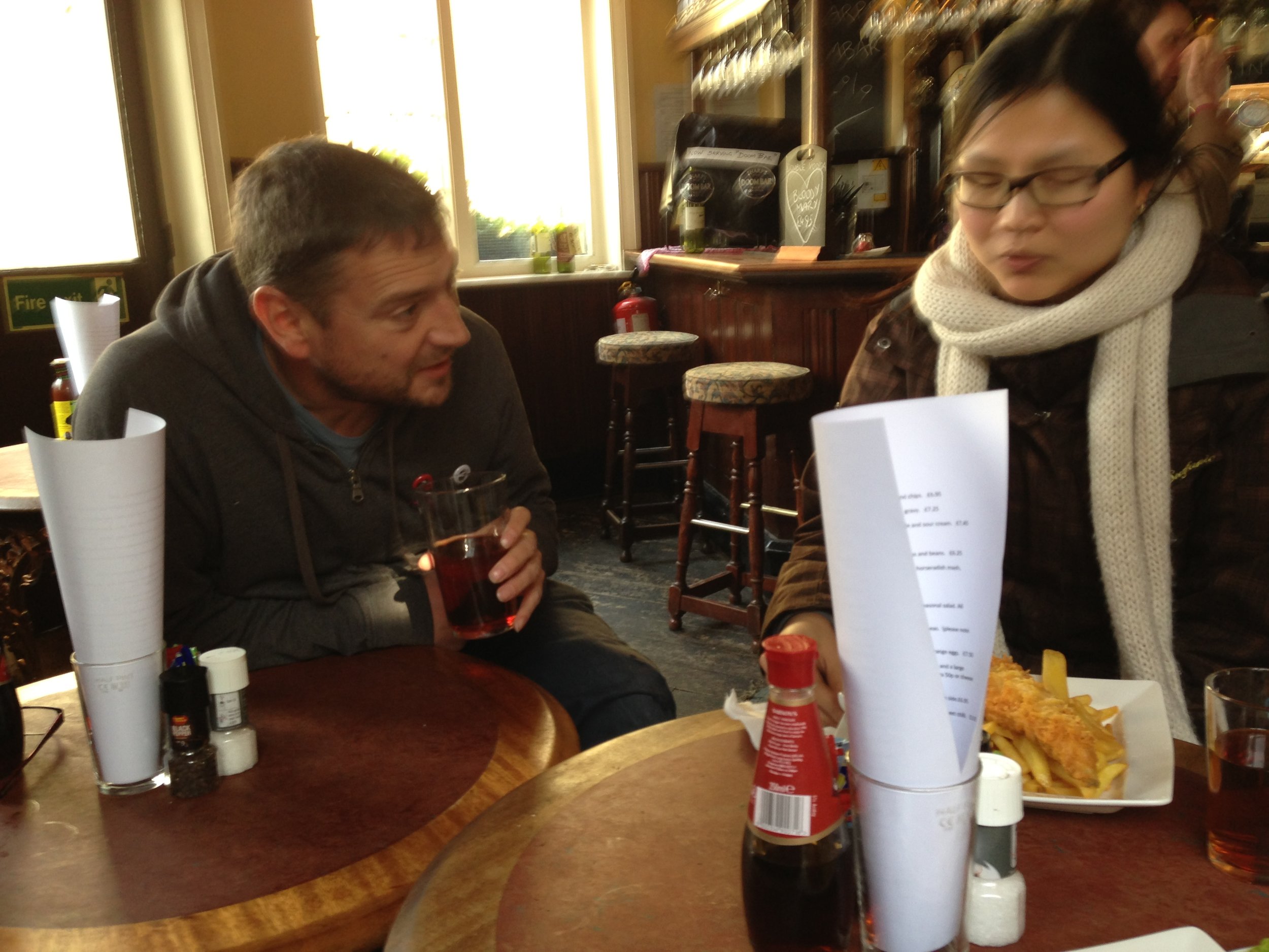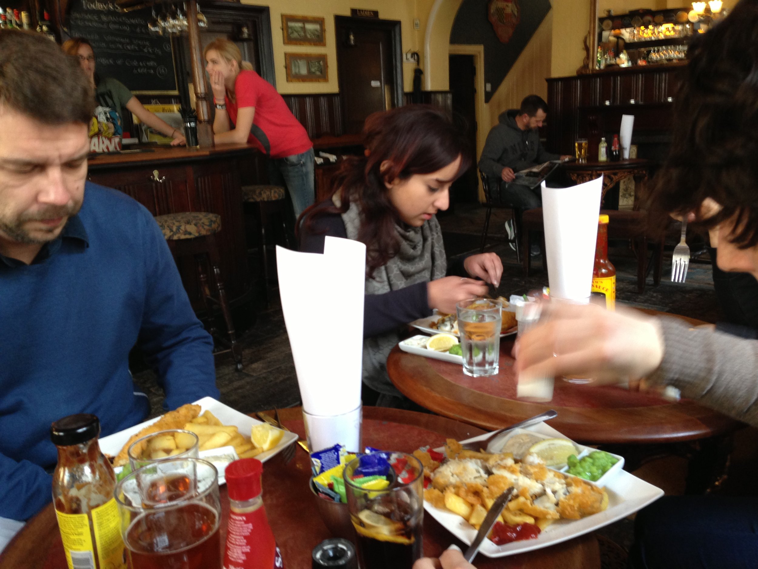 As lunchtime came about we decided to get the team together and go to the local pub for some well deserved fish and chips.  After a few pints and a bit of banter with team we got back to it and continued hammering out as much as we could.  Sari got her magic wand out and managed to come up with some branding in no time at all, working with Samera the UX was also really taking shape.