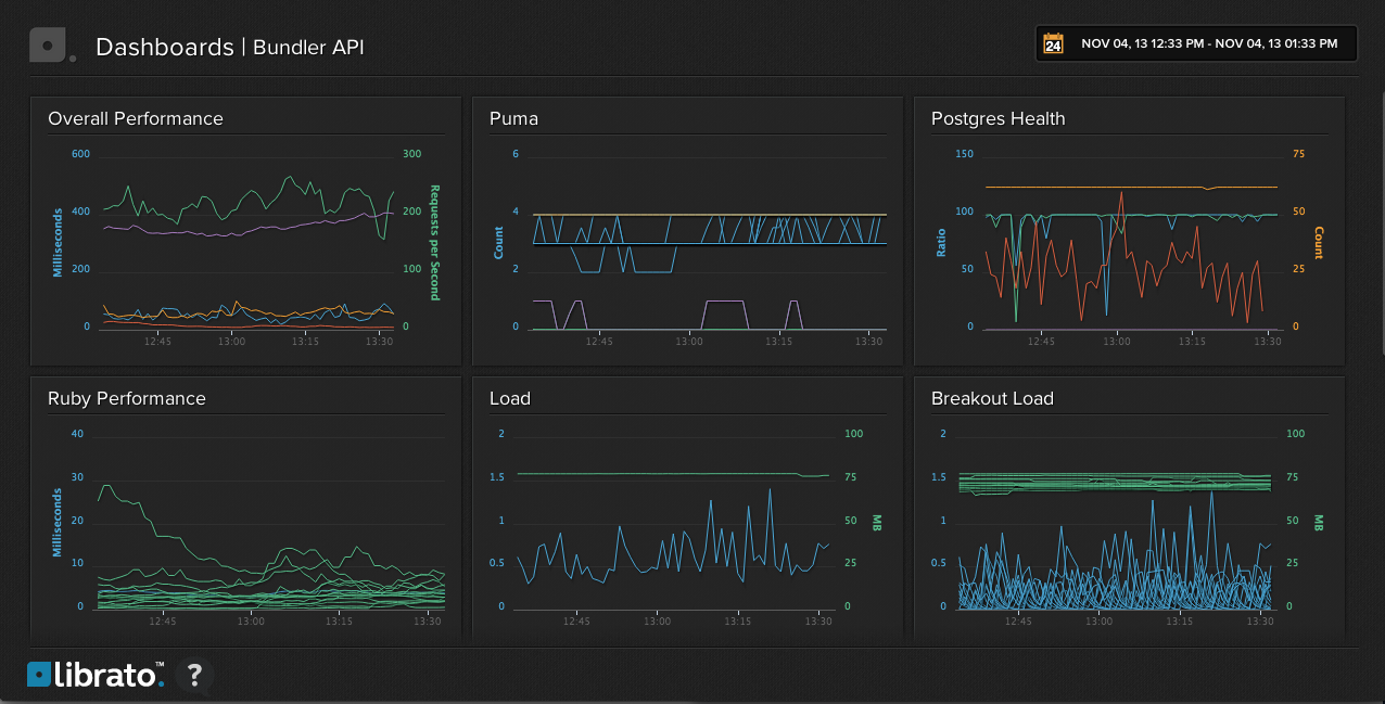 Librato is a paid service seemingly pitched as a hosted graphite alternative. This is odd, as the rest of the stack is tried and tested open source software. Librato was compelling for me for the following reasons: