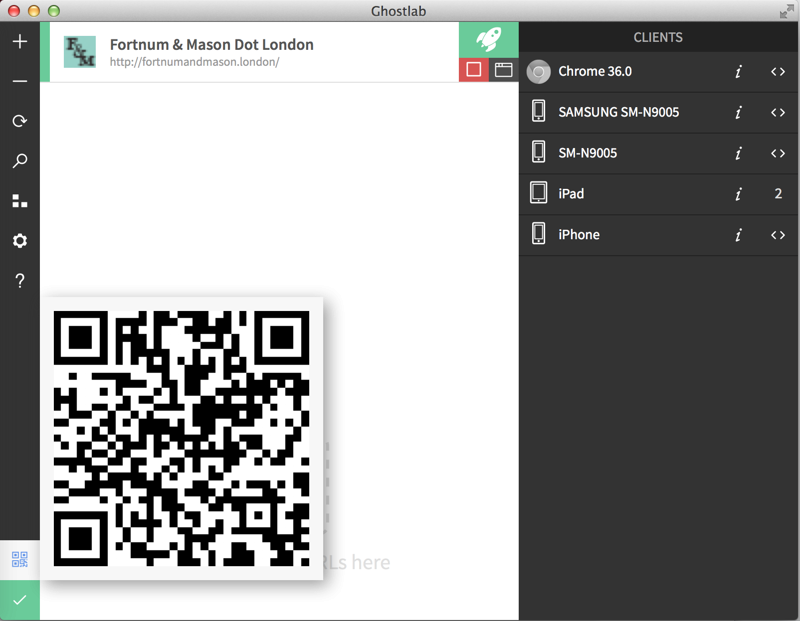 Running Fortnum & Mason.london via Ghostlab