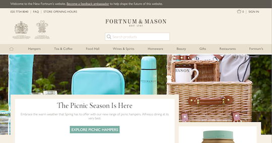 The new Fortnum & Mason, complete with Feedback banner