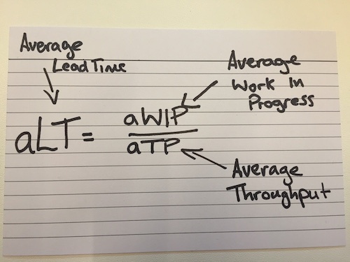 There are many ways to forecast within the Kanban framework, but here at Red Badger we utilise Little’s Law, illustrated below.