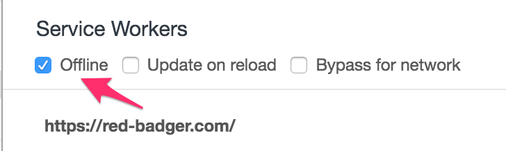 If you’re into Chrome developer tools, there is a neat trick that can emulate offline mode specifically for a given tab. Go to Application -> Service Workers and enable the Offline checkbox. Now reload the page.