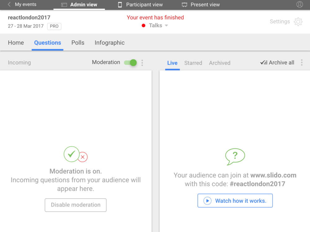 In the build up to React London 2017, we were planning to have questions asked by conference attendees to the speakers and QA panel throughout the day. However, this raised a number of issues.
